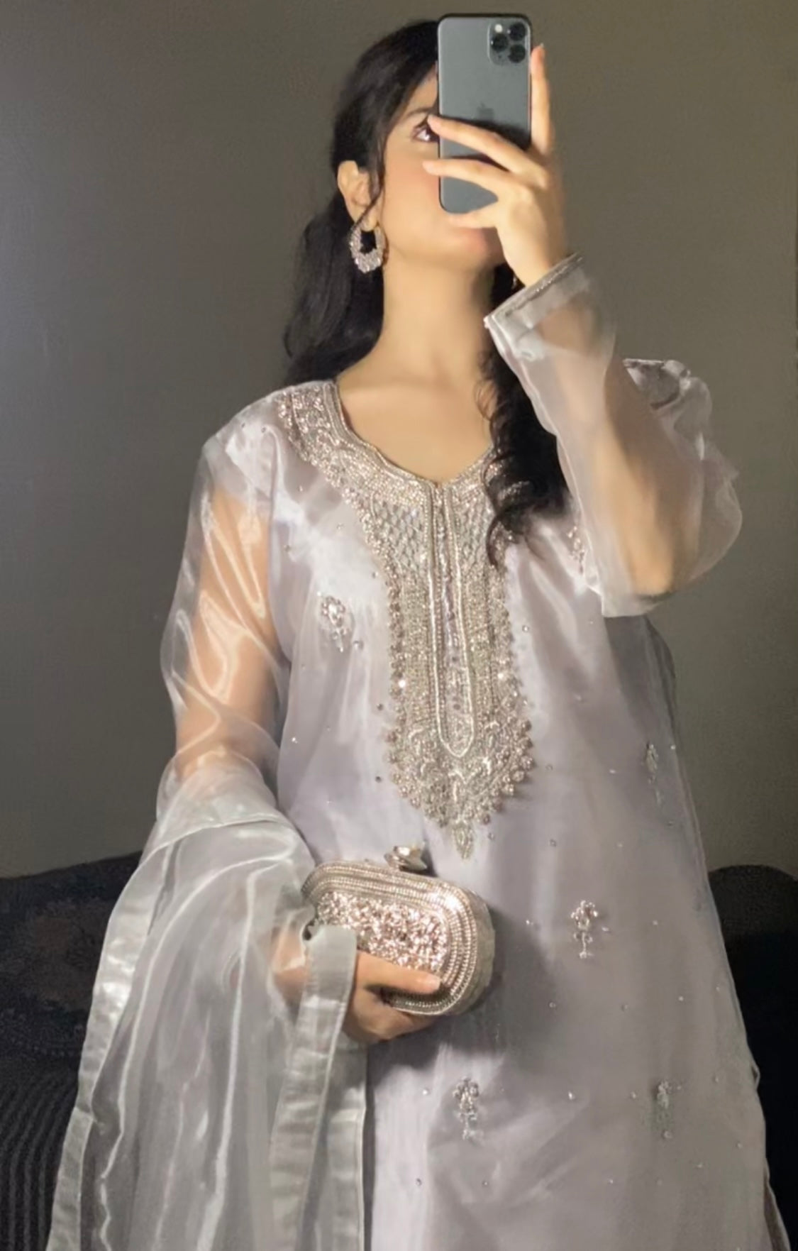 Beautiful intricate dabka work all over pure fabrics ready to wear 3pc